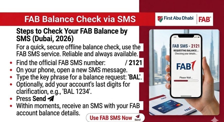 Note: FAB does not offer a public SMS keyword balance enquiry like some banks. SMS alerts depend on account activation.