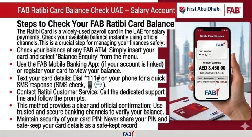 The FAB Ratibi card is widely used in the United Arab Emirates by employees who receive salaries without a traditional bank account. This guide explains all the easy ways to check your FAB salary account balance.
